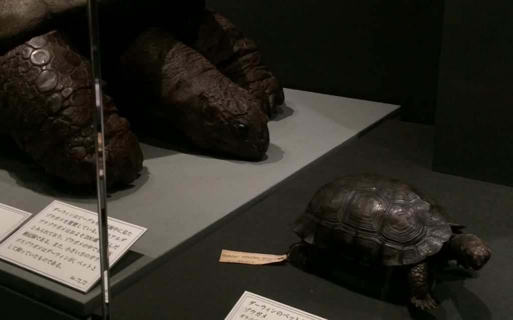 2003年にオープンしたダーウィンのコレクションの展示。1753年より地球上のあらゆる場所から収集したもので、45万個ものジャーに2200万以上の標本が並んでいる。上の写真の右側にゾウガメは、ダーウィンのペットだったゾウガメです。